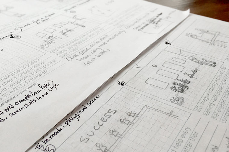 Once our design style was approved, I created the above storyboard sketches and presented to the client prior to design and animation.
