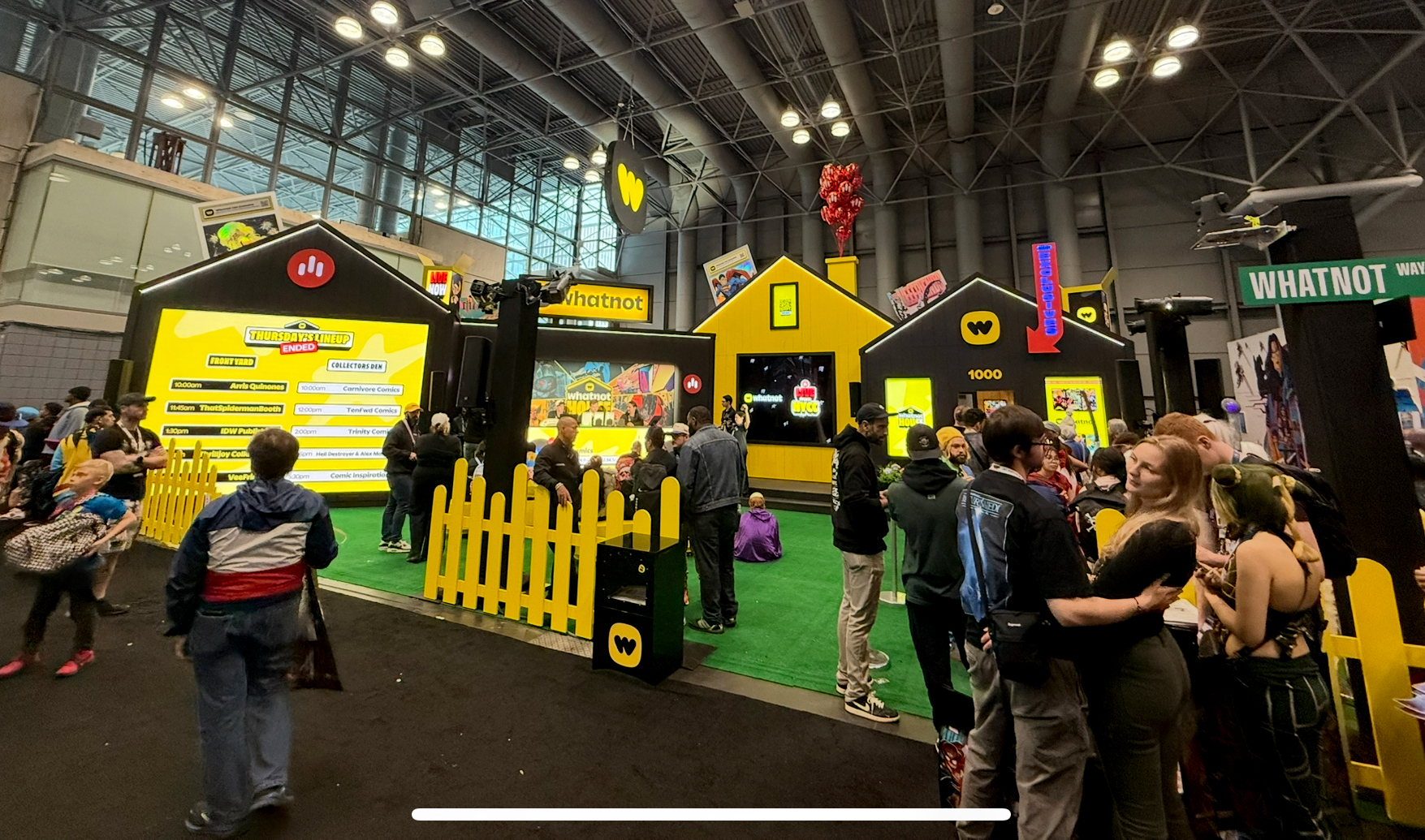 In 2025, Whatnot brought a live “All-Star Weekend” stage to the National Sports Collectors Convention, featuring giant leaderboards, live streamers ripping packs, giveaways, and interactive live-streamed content that connected the in-person crowd with online audiences.